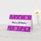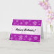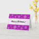 Eine Karte mit einem abstrakten lila Marmor wie Textur mit Blume Motiven. Herzlichen Glückwunsch zum Geburtstag auf der Vorderseite auf einem weißen überlappenden Effektband und auf der Innenseite. NB Der gesamte Text auf dieser Karte ist anpassbar, sodass er auch für andere Anlässe angepasst werden kann.