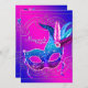 Schöne lila und heiß rosa Maskerade Party Einladung mit hübsch aquamarinem lila Heiß Rosa und königsblaue Federmaske auf einem wunderschönen königsblauen und heiß rosa Hintergrund. Diese elegante lila und königsblaue masquerade Party Einladung ist einfach für Ihre Veranstaltung angepasst, indem Sie einfach Ihre Veranstaltungsdetails, Schriftart-Stil, Schriftart-Größe & Farbe, und Formulierung. Dies ist ein gedrucktes Design ohne echten Glitzer, Federn, Juwelen, etc.