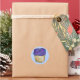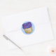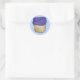 Aufkleber verfügen über eine originale Aquarellbilder eines lila mattierten Kuchens auf blauem Hintergrund.