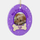Diese personalisierte Bildhundeverzierung hat Raum für das kundenspezifische Foto Ihres Haustieres. Über ihr sagt, "mein erstes Weihnachten." Unter ihm hat einen Knochen mit Raum für den Ihren Namen und das Jahr des Haustieres.