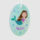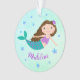 Dieses niedliche personalisierte Mermaid-Ornament besticht durch ein skurriles Mermaid- und Seesterndesign auf Aquarellhintergrund. Das Design ist auf der Rückseite gleich. Personalisieren Sie den Skripttext mit einem Namen.