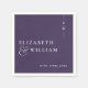 Diese minimalistisch eleganten Monogramm Hochzeitsnapkins können mit Ihren Details in der modernen Typografie auf einem lila Hintergrund personalisiert werden. Entwickelt von Thisisnotme©