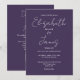Diese lila, elegante Script-Hochzeitseinladung kann mit Ihren Informationen in chic Typografie mit Ihren Hochzeitswebsite-Details und Ihrem QR-Code auf der Rückseite personalisiert werden. Entwickelt von Thisisnotme©