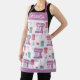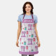 Niedlicher lila Mixer und Zutaten für die Kuchenherstellung auf bunten gemusterten personalisierten Schürze.