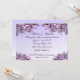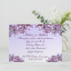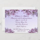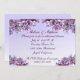 Fliedern sind das Thema dieser Hochzeits-Proben-Abendesseneinladung. Die Front kennzeichnet die rosa und malvenfarbenen lila Sprays auf einem lila Hintergrund. Die Rückseite hat mehr Blüten. Fertigen Sie den Text für Ihren besonderen Anlass besonders an.