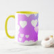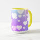 Schöne Pastellherzen Kaffee und Tee Tasse zwei mit gelbem Interieur und Griff.