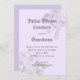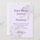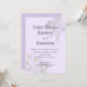 Lavender lila Brautdusche Einladungen mit Rose Hintergrund und mittelalterlichen Schriftart. Verwenden Sie für jede Art von Feiern, um die Braut zu ehren. Der Party und der Name der Braut sind in einem größeren Text verfasst, aber alle Texte sind im alten englischen Stil in dunklem lila. Weiße Rosen mit Knospen und Stielen schmücken den Lavendelhintergrund. Wählen Sie eine der Papieraktualisierungen aus, um das Design zu verbessern.