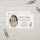 Eine ruhige und berufliche notarielle Visitenkarte mit einem weichen Lavendelfederhalter, QR-Code und Foto-Layout. Mit modernem Creme-Hintergrund und eleganten Serif- und Skript-Schriftart ausgestattet, um auf den ersten Blick Vertrauen aufzubauen.