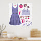 Ein Mode-Set von Artikeln in lila. Dieses Design sieht wirklich effektiv aus auf diesem Poster