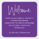 Dieser lustige und moderne lila-weiße Begrüßungsaufkleber, der auf Ihrem Begrüßungsbeutel oder -korb in der Unterkunft angebracht ist, ist eine gute Möglichkeit, Ihren Gästen aus der Stadt für die Reise zu danken, die sie für Ihre Hochzeit benötigen.