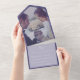 MIT ODER OHNE QR CODE IM UAWG BEREICH ODER MIT ODER OHNE ABENDESOPTIONEN. Dieses Design ist einfach, aber elegant, komplett mit dem Bräutigam oder Braut's letzte erste auf der Außentafel. Der Rand ist eine lila Wasserfarbe und ein durchsichtiges lila Overlay bedeckt das Foto, das Sie hinzufügen. Fügen Sie Ihrer Einladung auch einen personalisierten QR-Code hinzu, sodass Besucher schnell auf Ihre Hochzeitswebsite für Details, Anleitungen, Menüoptionen und mehr zugreifen können, oder fügen Sie Ihre Geschenkregistrierung Web-URL. Personalisierte All-In-One-Einladungen sind eine einzigartige Kombination aus einer schön gedruckten, maßgeschneiderten Einladung und einer leicht zu abreißenden perforierten UAWG-Postkarte. Und sie sind so einfach zu bedienen! Man falte einfach, dann Siegel die Rückklappe mit den drei beiliegenden Klarkleben, und Post. Und wenn Ihre Gäste Ihre persönliche Einladung erhalten, reißen sie einfach die perforierte RSVP Karte ab und lassen sie in der Mail an Sie zurück!