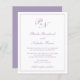 Traditionelles Budget Hochzeitseinladung mit einem einfachen und klassischen Design mit Ihren beiden ersten Monogramm und Ihren Namen in einer eleganten Kalligraphie innerhalb eines dünnen Randes. Alle Designelemente sind in staubigen, lila Farben auf weißem Hintergrund und können im Designbearbeitungstool geändert werden. Dieses elegante Design ist perfekt für eine formelle Hochzeit.
