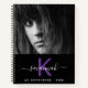 Ein schicker schwarzer Hintergrund. Personalisieren und fügen Sie Ihr eigenes Foto, einen Namen, einen Monogramm-Brief und ein Jahr. Der Name ist weiß geschrieben mit einem großen, modernen Handschrift Schrift mit Schrägstrichen. Der Monogramm-Brief in lila. Für die Schule, arbeiten Sie als Skizze, Tagebuch und Journalismus. Um die Swashes behalten, löschen Sie nur den Beispielnamen, verließ die Leerzeichen oder Emoji's vor und nach dem Namen