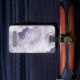Gepäckanhänger mit lila Hintergrund und weißer Schneeflocke. Karo in unserem Shop für mehr Gepäckanhänger Designs.