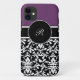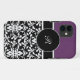 Kundenspezifisches Monogramm iPhone 5 Hüllen mit Damastmuster und lila Hintergrundfarbe, die Sie ändern können. Addieren Sie Ihre Initialen oder Ihren Namen.