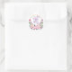 Personalisieren Sie runde Aufkleber mit Ihrem ersten Set in einem Blumenrahmen in lila und rosa Farbtönen. Verwenden Sie sie, um Ihre Sachen, Siegel-Umschläge zu kennzeichnen und eine persönliche Touch zu jedem Element mit diesen personalisierten Aufklebern.