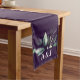 Lila Moderner Grüner Monogramm Wedding Medium Table Runner Ein einfacher Tischläufer in moderner lila Farbe mit Ihrem Monogramm auf jeder Seite oder Text Ihrer Wahl und Grün über der Textzeile.Ideal für Hochzeiten, Verlobungsfeiern, Abschlüsse, Babyduschen, Brautparty, Geburtstagspartys, Hinterhof-Party.