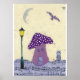 Lila Mushroom House mit Lampe Post und Katze Poster