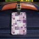 Gepäckanhänger mit karierten Designs mit subtilen Aquarellfarben in Lila, lila und lila. Sie können den Text des Monogramms entweder anpassen oder löschen.