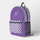 Der lila Whiteboard Karo Muster bedruckte Rucksack mit dem Logo-bedruckt im Retro-lila-Weiß-Schachbrettmuster mit Ihrem individuellen Firmenlogo. Ideal für Firmengeschenke, Schule, Sport, Gymnastik, Reisen und vieles mehr. Designed by ©2025 Evco Studio www.zazzle.com/store/evcostudio
