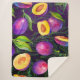 Helle lila Aquarellpflaumen auf einem lila Wildlederhintergrund mit zeichnend grüner Rosmarinlinie. Die perfekte lila Kombination. Der lila Farbverlaufshintergrund kann entfernt werden, sodass Sie Ihre eigene Farbkombination auswählen können. Ändern Sie es in ein anderes Grün, oder sogar Schwarz, um dieses Muster noch atemberaubender zu machen.
