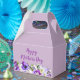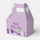 Lila Schrift sagt "Happy Mother's Day" über lila Blumen.