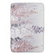 Eine bezaubernde Szene von Wisteria, die von oben kaskadiert wird und mit lila Glitterie, Rose und Weißtönen gegen eine weiße Leinwand geschmückt ist, die ein Gefühl von Staunen und Magie weckt.