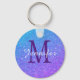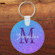 Lila Blue Ombre Glitzer Glitzern Monogram Name Schlüsselanhänger Hübscher Glamour-Design auf runde Taste Schlüsselanhänger macht eine großartige Geschenk-oder Gunst-Idee für einen Geburtstag, Hochzeit oder jede Gelegenheit. Einfache Vorlage zur Verfügung gestellt, um Ihren eigenen Namen eingeben