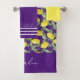 Diese Handtücher sind klassisch und unbestritten niedlich und laden zu einer Touch Charme in jedem Raum ein. Das schicke Zitronenmuster ist erfrischend und stilvoll, was diese Handtücher zu einer angenehmen Ergänzung Ihrer Zuhause macht. Die lila und gelben Farbtöne harmonieren perfekt mit dem Zitronenmotiv der Handtücher. Dieses Set von Handtüchern ist elegant präsentiert und verleiht dem Ganzen einen noch größeren Reiz. Jedes Handtuch-Set kann auch mit einem Namen personalisiert werden, indem es eine einzigartige und raffinierte Touch in die Badezimmerdekoration fügt. Die Kombination der Designelemente schafft ein optisch ansprechendes und praktisches Set von Handtüchern für den Alltag.