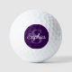 Ladys Golf Bälle mit einem eigenen weißen Skriptnamen auf einem dunklen, lila Hintergrund mit einem hellen lila Monogramm. Ideal, um Ihrem Golfspiel eine persönliche, stilvolle Touch hinzuzufügen.