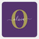 Lila Name für Monogramm-Skripte Quadratischer Aufkleber