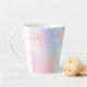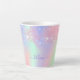 Ein angesagter holografischer Hintergrund mit Einhorn- und Regenbogenfarben in Rosa, lila, Rose Gold, Minzgrün. Mit rosa Imitaten dekoriert, Glitzer Staub. Personalisieren und fügen Sie einen Namen, geschrieben mit einem modernen handgeschriebenen Stil Skript mit Swashes. Lila Buchstaben. Um die Swashes behalten, löschen Sie nur den Beispielnamen, verlass die Leerzeichen oder Emoji's vor und nach dem Namen.