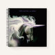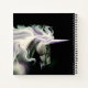 Ein Profil eines weißen Einhorns mit lila Naht in der Mane vor schwarzem Hintergrund