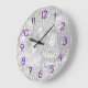 Einfaches Platzhalterbild. Aber Sie können Ihr eigenes Foto zu diesen lila Zahlen auf einer Uhr-Seite hinzufügen. Sie sind nett und hell, um mit modernen Fotos zu gehen.