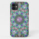 Wunderschönes geometrisches Muster, entstanden aus digitalen Pfauenfedern mit lila Om-Symbol in der Mitte
