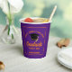 Dieser moderne, lila und orangefarbene, kundenspezifische Party-Papierbecher für Senioren zeigt klassische Typografie Ihres High School- oder Uni-Namens für die Klasse von 2024. Passen Sie mit Ihrem geschlossen Jahr unter der schicken handgeschriebenen Drehbuch und schwarzen Graduiertenkappe für ein großes personalisiertes Graduiertenfest-Sake-Geschenk an.