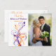 Diese weiße, orangefarbene und lila Blumendanken Ihnen Hochzeit Foto Post-Karte hat einen Template-Bereich für Sie, um Ihr digitales Foto hochzuladen. Es passt zu der unten gezeigten Hochzeitseinladung. Wenn Sie weitere passende Artikel in diesem Design benötigen, senden Sie Ihre Anfrage bitte an niteowlstudio@gmail.com.