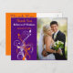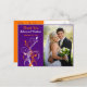 Diese weiße, orangefarbene und lila Blumendanken Ihnen Hochzeit Foto Post-Karte hat einen Template-Bereich für Sie, um Ihr digitales Foto hochzuladen. Es passt zu der unten gezeigten Hochzeitseinladung. Wenn Sie weitere passende Artikel in diesem Design benötigen, senden Sie Ihre Anfrage bitte an niteowlstudio@gmail.com.