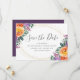 Diese einzigartige Hochzeit speichern das Datum Design bietet Aquarellfarben Blume in lila und orange. Ein moderner Kalligraphieskript-Schriftart fügt eine moderne Touch hinzu. Verwenden Sie die Online-Vorlagenfelder, um diese einfach zu personalisieren und die Daten für Ihren besonderen Tag zu speichern!