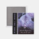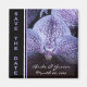 Elegant Save the Date Magnete, mit schönen lila Orchideen auf schwarzem Hintergrund.