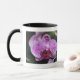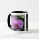 Lila Orchideen-Doppeltes mit der Grenzwecker-Tasse Tasse