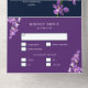 Diese lila Dendrobium Orchidee lädt zu einer eleganten Hochzeit im modernen Stil ein. Die Einladung ist in einem tiefblauen, lila und grünen Farbschema gestaltet. Für noch mehr Anpassung dieses Designs, nachdem Sie auf die Schaltfläche "Personalisieren" klicken, um Ihre Informationen eingeben, können Sie auf die blaue Schaltfläche "Design bearbeiten" am unteren Rand klicken. Matching Dankeschön Karte ist ebenfalls verfügbar.