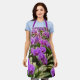 Schürze mit lila Orchideen, eine Blumenschürze, die einen Hauch von Naturschönheit verströmt, während Sie Ihre Speisen zubereiten.