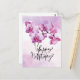 Eine lila Orchideenkarte mit den schwarzen Worten "Happy Birthday" ist der perfekte Weg, um jemandem zu zeigen, der an diesen Tag denkt. Die Postkarte ist vollständig anpassbar, sodass Sie Ihre persönliche Nachricht hinzufügen können, um sie besonders zu machen.