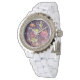 Elegantes Bild auf einer Uhr von Meereslebewesen auf einem lila Hintergrund.