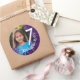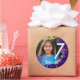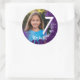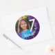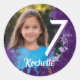 Fügen Sie Ihrer 7. Geburtstagsparty ein wenig Pizzazz hinzu, mit individuellen Foto-Aufklebern und einem lila Spritzlackdesign. Stickers sind anpassbar, wo Sie Ihr eigenes Foto und Ihren Namen hinzufügen können.