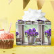 Hübscher lila Panikstrauß in einem Vintagen Pflaster mit weicher grauer Grenze. Die Grenzfarbe kann geändert werden.