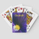 Moderne und elegante Spielkarten für Blume-Liebhaber mit einem originalen Makrofoto einer wunderschönen lila und gelben Pansy-Blume. Einfach anpassbar, indem Sie Ihren Namen oder Text Ihrer Wahl auf einem gelben Kalligraphie-Schriftart hinzufügen.