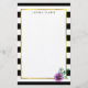Moderne Blumenpapiere mit schicken schwarz-weißen Streifen mit einer lila Aquarellpansy-Blume und goldenen Imitaten Akzente. Passen Sie mit einem Monogramm, Namen oder Text Ihrer Wahl an!