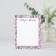 Lila Blumenstanzpapier Unser niedliches Schreibpapier zeichnet sich durch eine gediegene Blume und ein grünes Muster in lila, grün und magenta aus. Die Oberseite der Karte bietet Platz für die Personalisierung des Papiers. Fügen Sie Ihren Namen, ein Zitat oder jede Begrüßung, die Sie gewollt haben, hinzu. Die Rückseite ist leer, sodass Sie sie falten können, um sie zu adressieren oder von vorne aus weiter schreiben zu können. Diese Schreibwaren ist Teil unserer Oh So Hübschen Sammlung.
